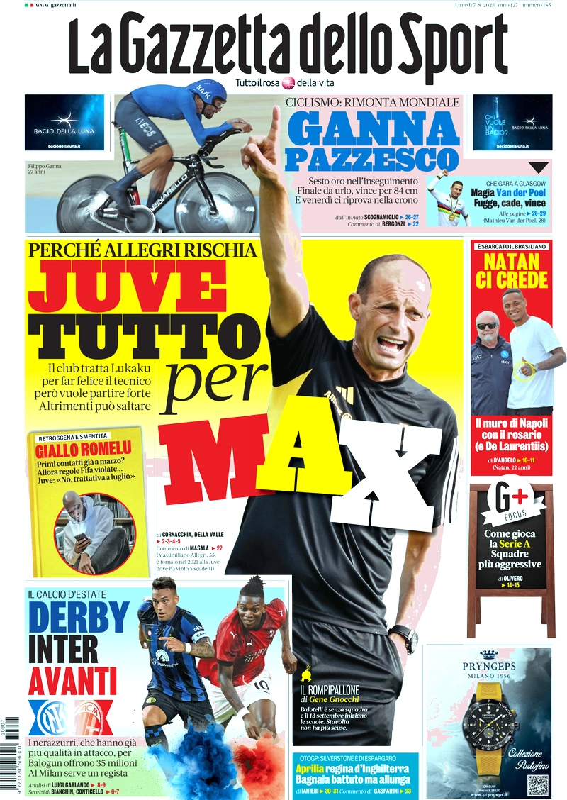 Queste le prime pagine dei quotidiani sportivi in edicola oggi...