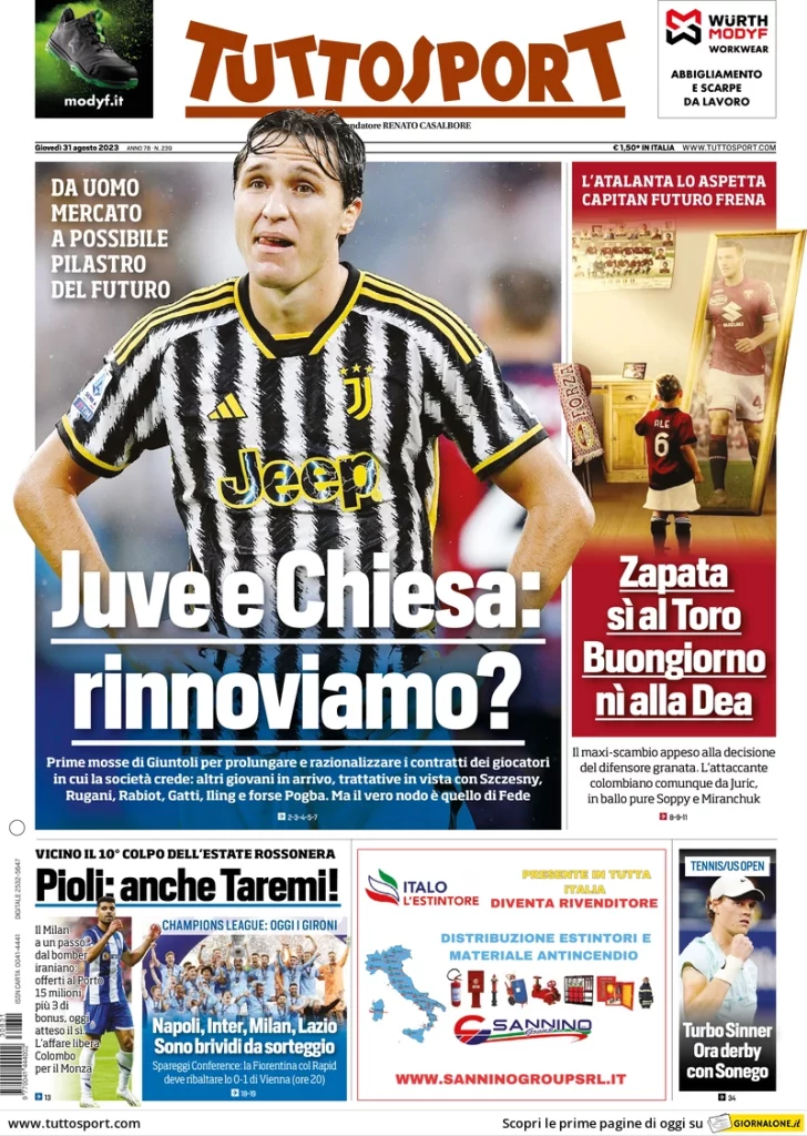 Queste le prime pagine dei quotidiani sportivi in edicola