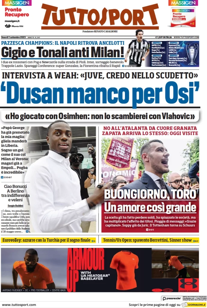 Dalla grande paura di perdere Buongiorno alla grande gioia di aver preso Zapata, attaccante inseguito...