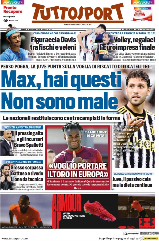 Queste le prime pagine dei quotidiani sportivi in edicola