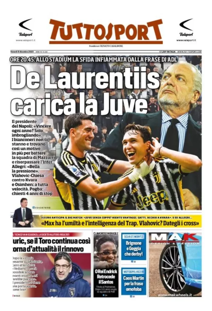 Le prime pagine dei quotidiani sportivi
