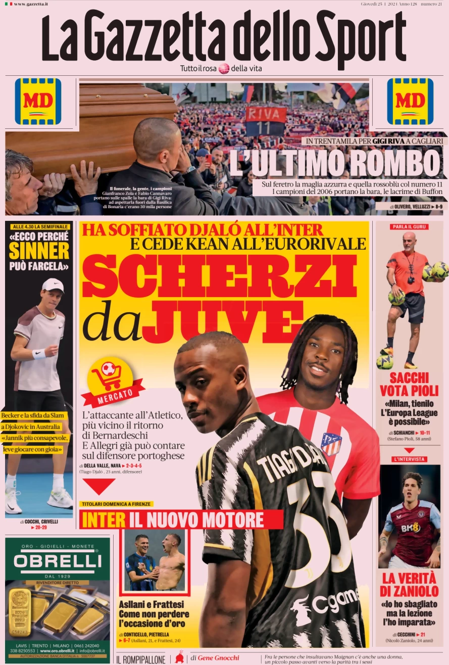 Queste le prime pagine dei quotidiani sportivi in edicola oggi...