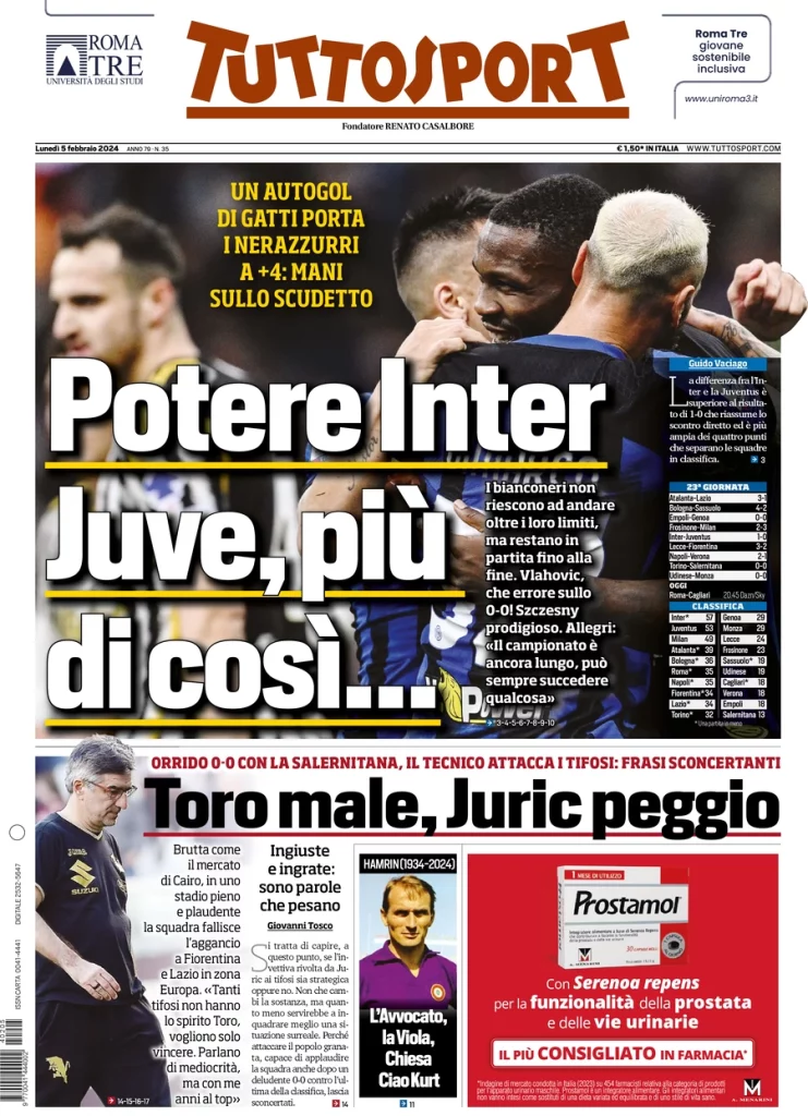 Le prime pagine dei quotidiani sportivi