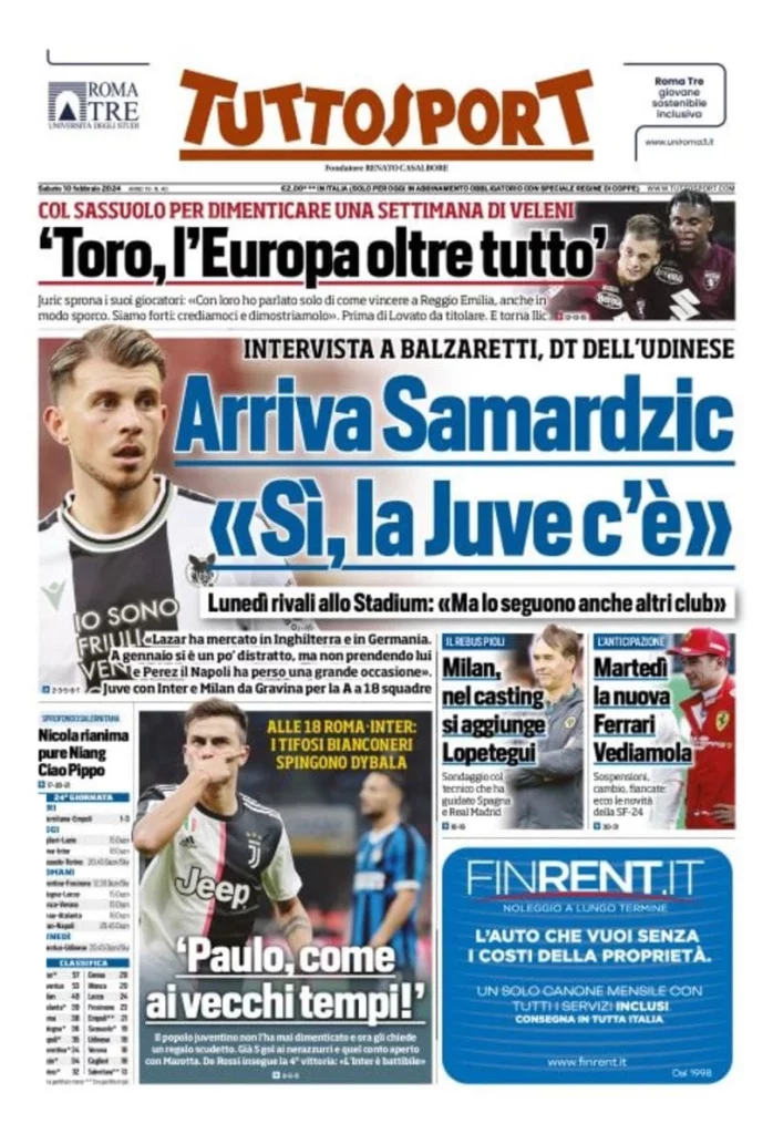Queste le prime pagine dei quotidiani sportivi in edicola...