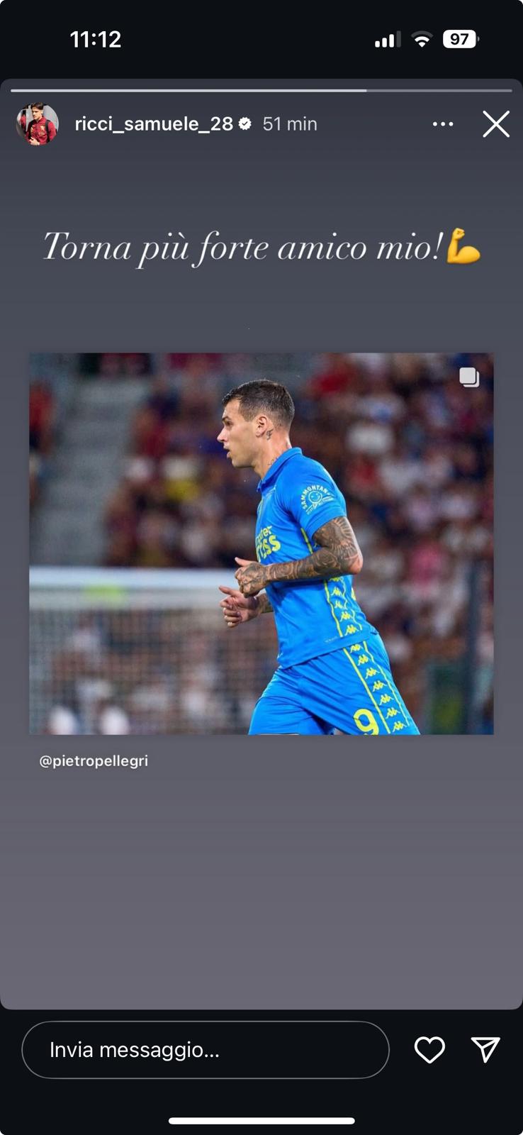 Amici dentro e fuori dal campo, Samuele Ricci e Pietro Pellegri hanno condiviso anche le vacanze estive oltre allo spogliatoio ai tempi del Toro e dell’Under 21 azzurra. E il loro rapporto è proseguito anche adesso che le strade si sono divise, con il centrocampista che è ancora in granata e l’attaccante che si era trasferito all’Empoli. L’ex Milan si è procurato un terribile infortunio al ginocchio, Ricci gli ha dedicato un messaggio su Instagram: “Torna più forte, amico mio” gli ha scritto attraverso le storie del noto social network.