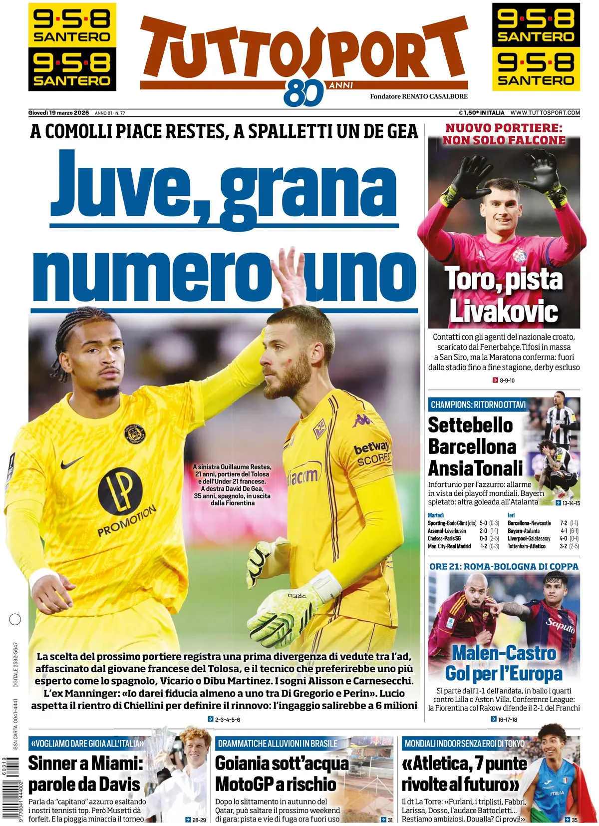 Le prime pagine dei quotidiani sportivi
