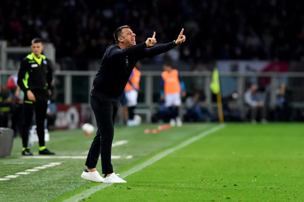 Il tecnico D'Aversa sta caricando i suoi ragazzi, dopo la sconfitta sul campo del Napoli...
