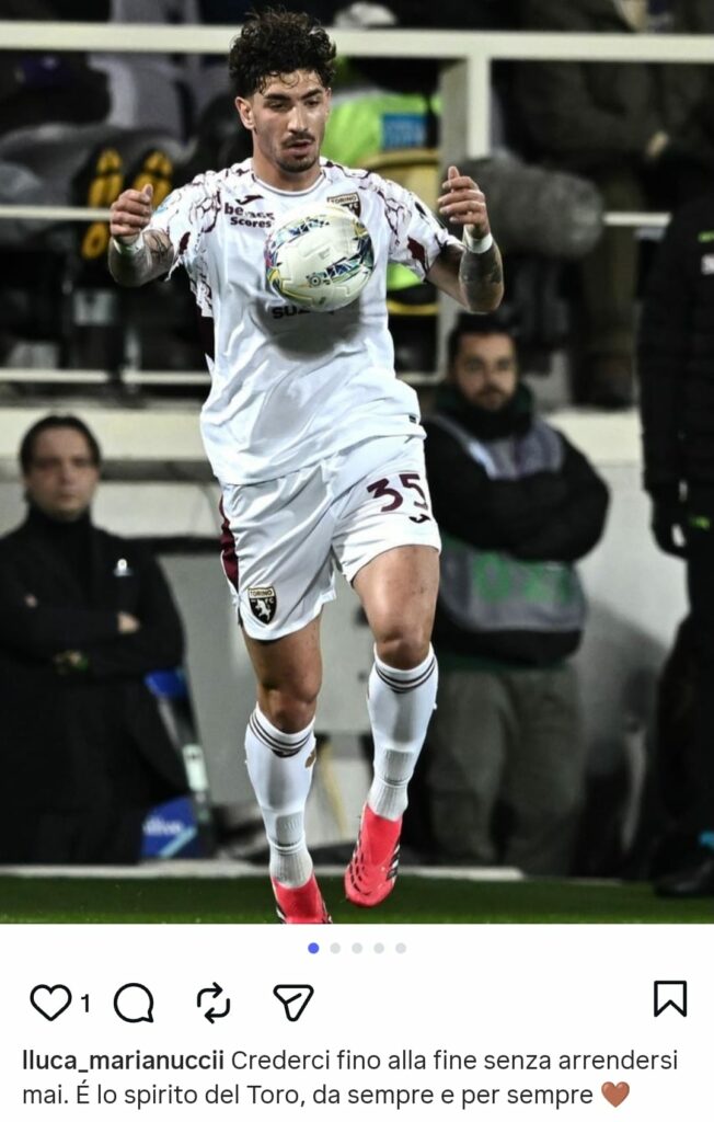 Marianucci sui Social: “Lo spirito granata ĆØ non arrendersi mai”